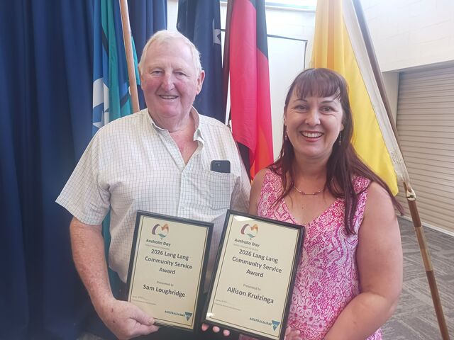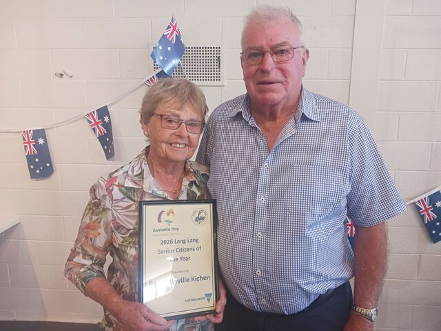 Senior Citizen of the Year went to the duo Bev and Nev Kitchin for their ongoing support of local sport and social events for seniors, from the tennis club to the Lang Lang Bowls Club, where Nev is president.